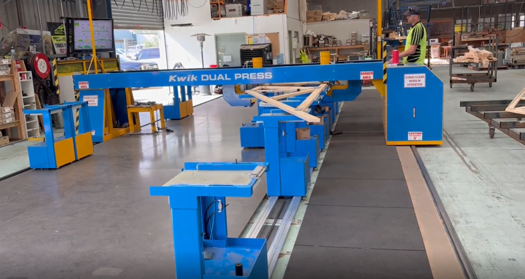 The Kwik Dual Press is engineered for enhanced productivity and safety, capable of being operated by a single person. This makes it an ideal choice for small to mid-sized truss plants.